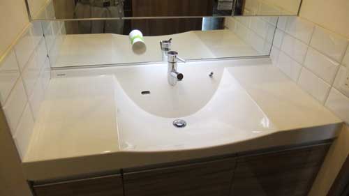 2・洗面所流し台クロス貼りのそで壁をタイル貼りにする